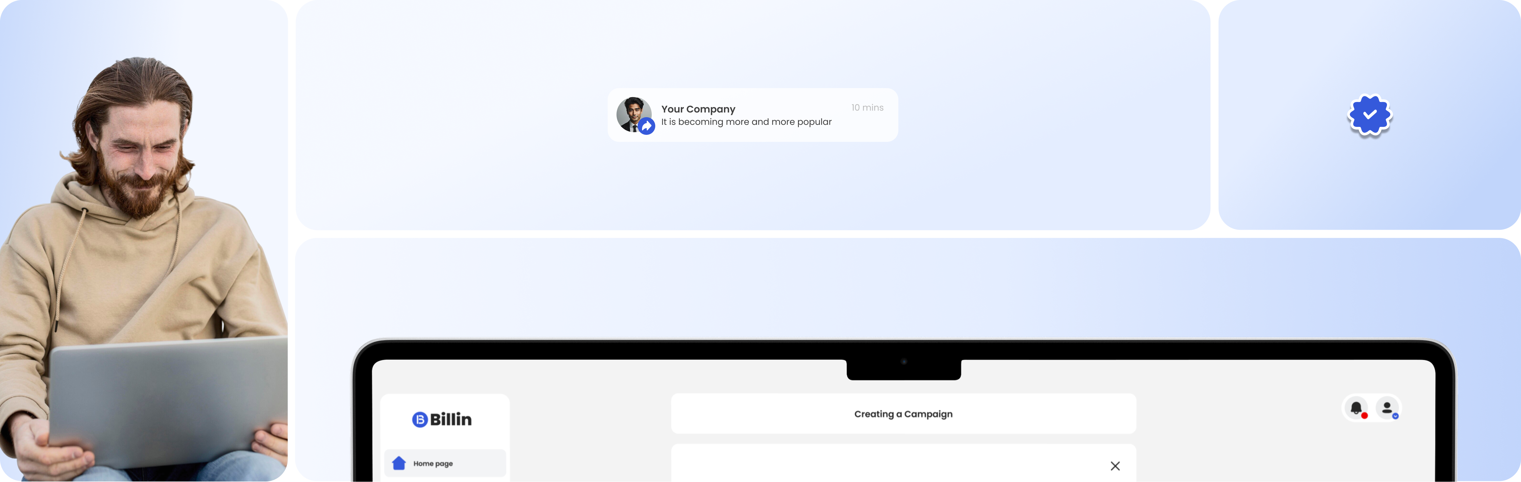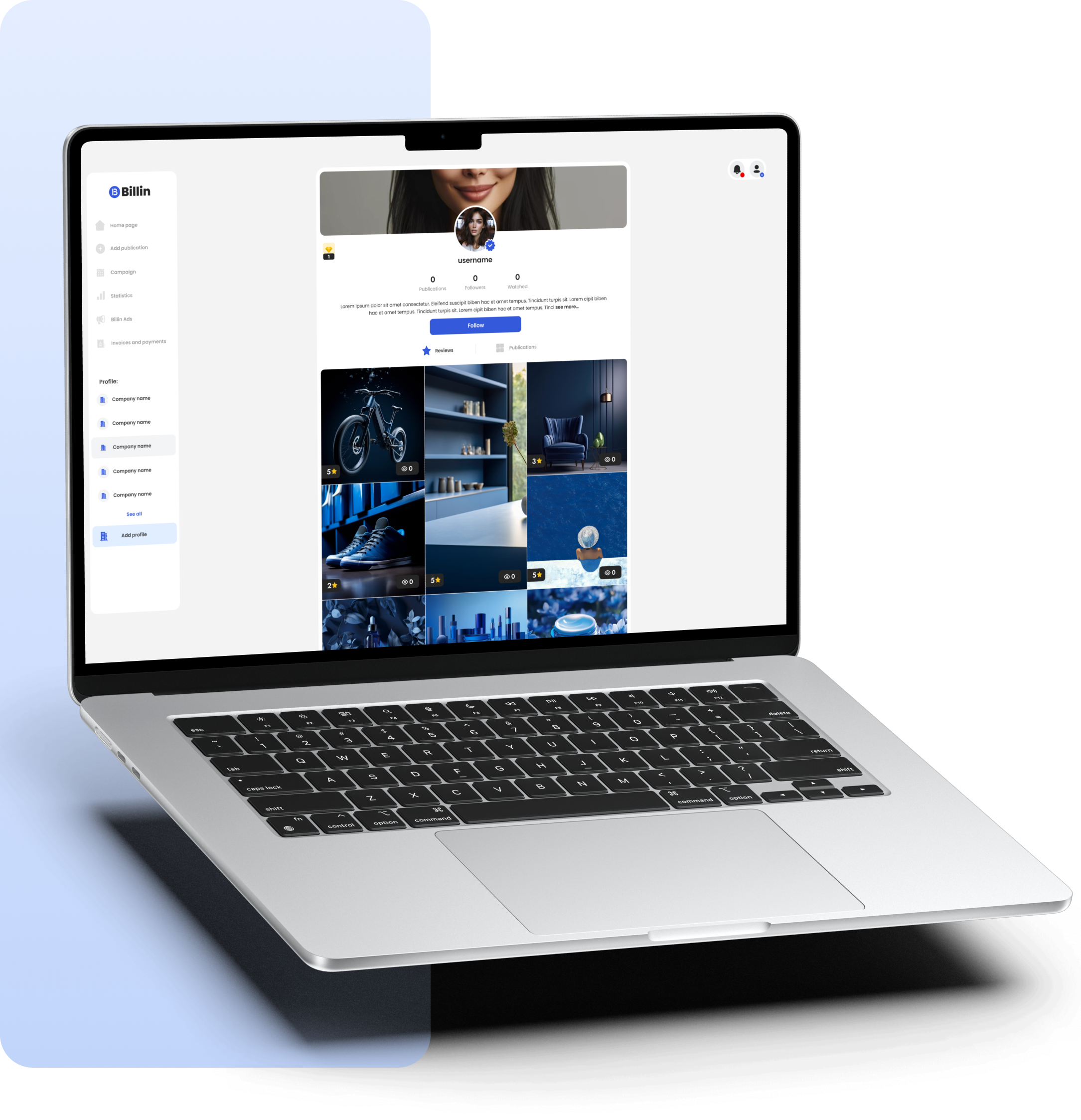 Introducing a modular dashboard layout with clearly separated sections (campaigns, profiles, analytics, payments).