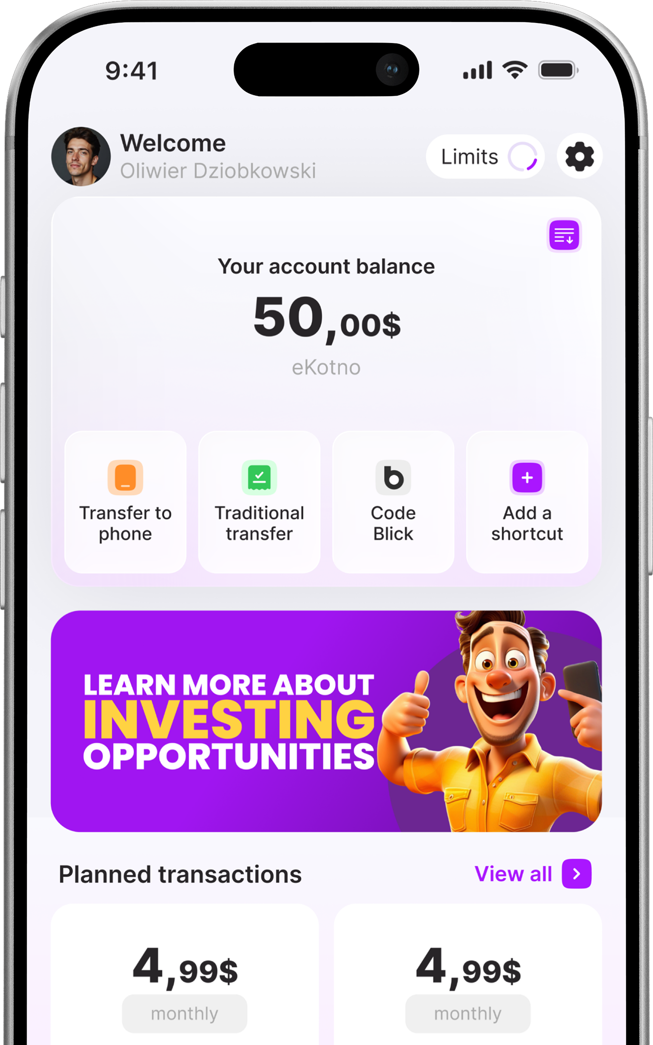 The project involves creating a modern banking ecosystem consisting of both a mobile and a web application. Both solutions are designed to provide a consistent user experience regardless of the device. The mobile app focuses on the speed of performing key operations - such as payments, balance overview, and card management - while the web version expands these capabilities with deeper analytics, advanced settings, and comprehensive management of financial products. The entire system is built on a unified design system and a modular interface, enabling smooth navigation and personalization.