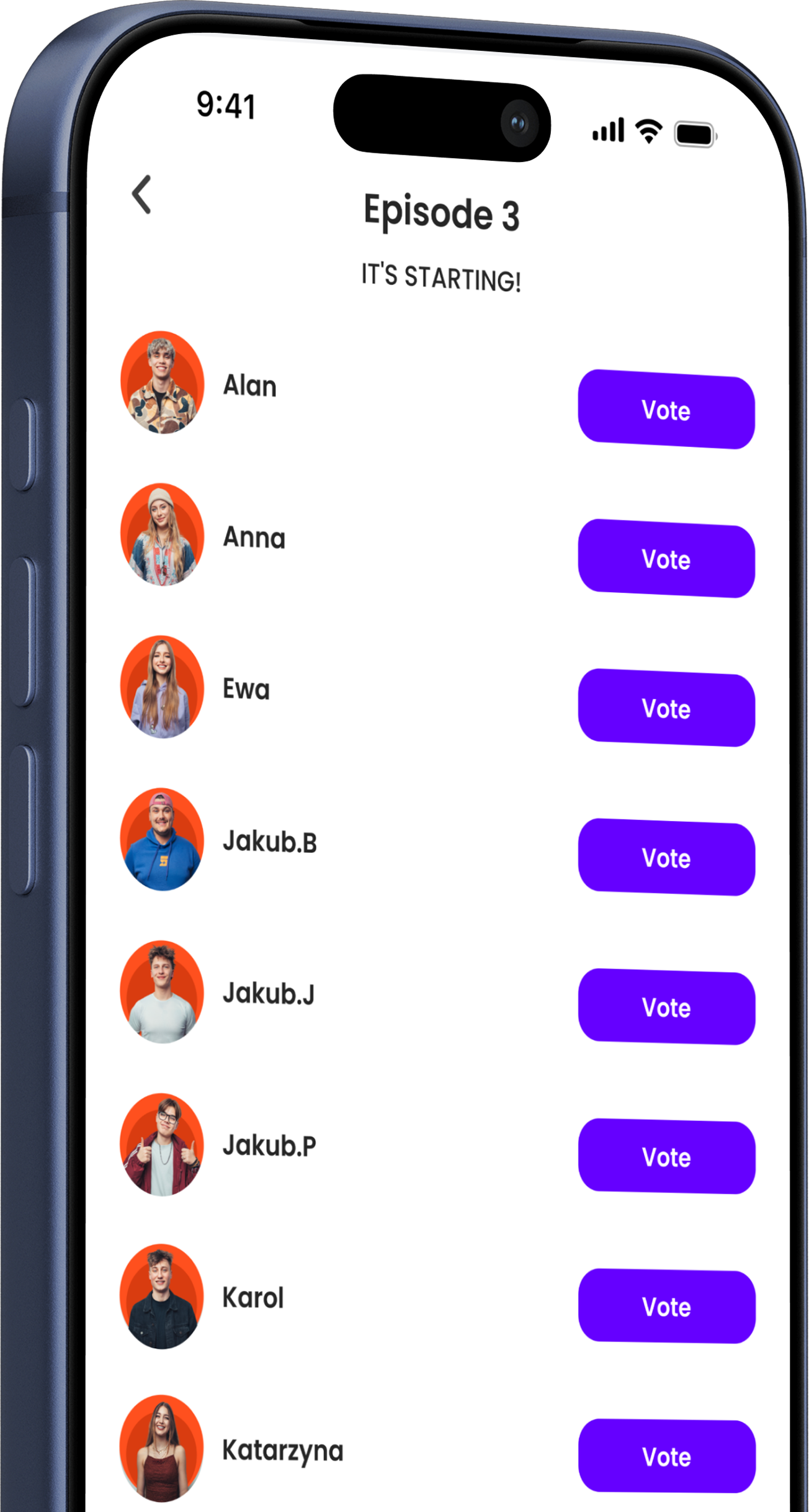 The application was designed in collaboration with “Ekipa Holding S.A.” (the largest group of influencers in Poland) as part of the “Your 5 Minutes” program, serving primarily as a voting tool, but not only that. It played a key role during the show’s broadcast by gamifying the viewing experience. The app successfully motivated users to engage with the platform and keep watching the program.